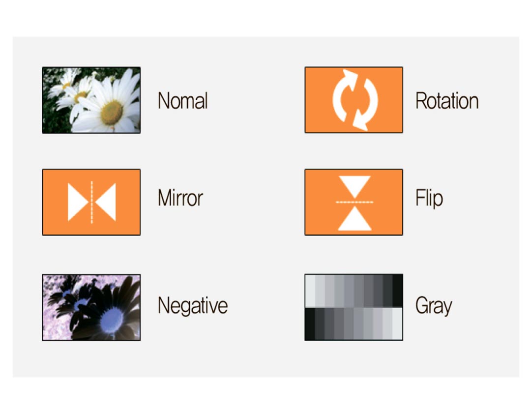 - Brightness, Sharpness, Contrast, Gamma, Exposure